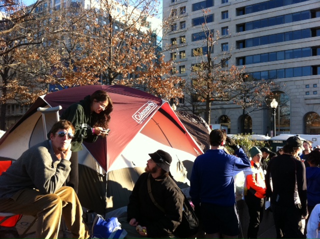 This year’s new location at D.C.’s Freedom Plaza was a real winner.   Even with the park  shared by the Occupy DC protesters (undoubtedly happy for the influx of clean portapotties and bottled water), there was ample parking and tons of pre/post race hang-out space.