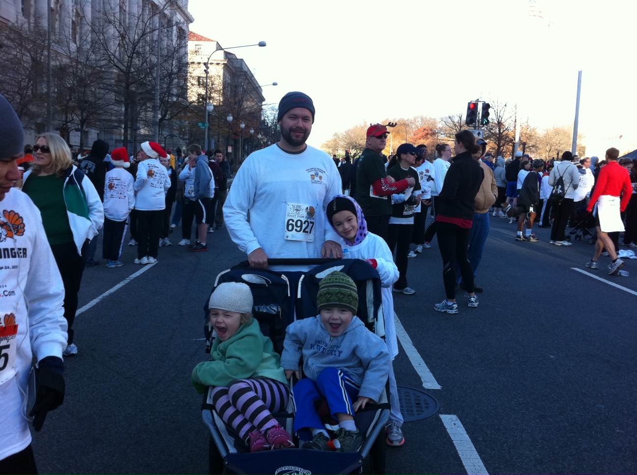 This race has always been a local favorite of mine, but this year was especially important because my entire family participated.   My husband, the 4-year-old twins, and our 7-year-old daughter were all out there with me this morning….and we had a BLAST.   The kids are already asking about the next race…and this makes me smile.  So much to be thankful for!
